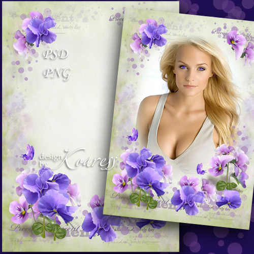 Рамка для фотошопа - Ах эти анютины глазки PSD, многослойный, PNG | 3508x4961 | 300 dpi | 104,65 Mb Автор: Koaress |