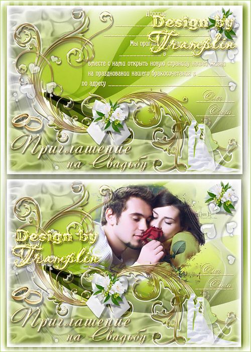 Многослойный исходник пригласительной открытки на свадьбу Psd - многослойный | 4518 x 3372 | 300 dpi | 222 MB Приглашение на свадьбу с золотыми завитками, бантом, белыми цветами и красивой надписью Автор: Tramplin |