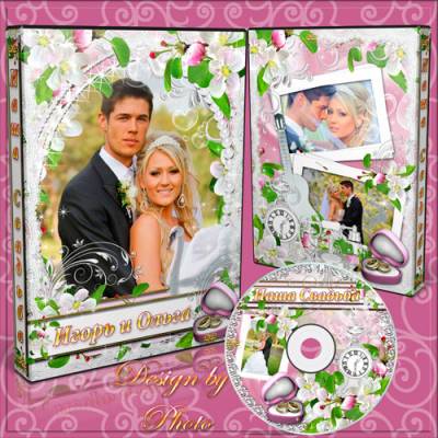 Свадебная обложка и задувка на DVD диск - Одно счастье на двоих PSD | 300 dpi | 1431 x 1431 , 3248 x 2177 | 138 мб Автор: Фотка |