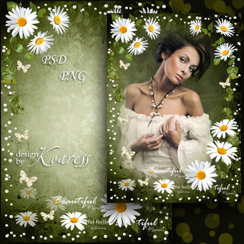 Рамка для романтических фото - Нежность белых полевых ромашек PSD, многослойный, PNG | 3508x4961 | 300 dpi | 127,66 Mb Автор: Koaress |