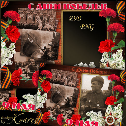 Рамка для фото - День Победы - фотографии из архива PSD, многослойный, PNG | 4961x3508 | 300 dpi | 120,61 Mb Автор: Koaress |