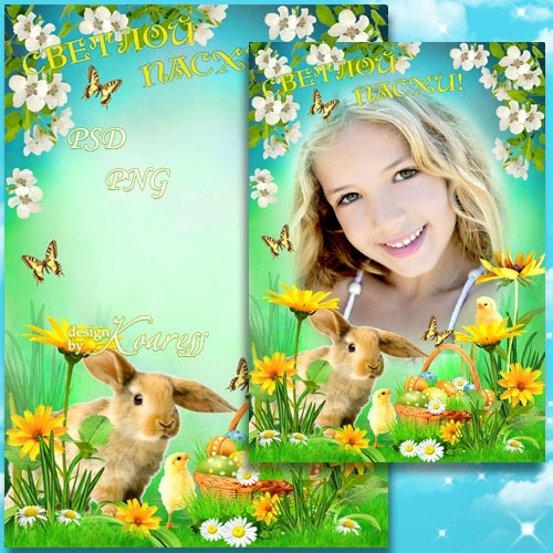 Пасхальная поздравительная рамка для фотошопа - Светлой Пасхи PSD, многослойный, PNG | 3508x4961 | 300 dpi | 101,14 Mb Автор: Koaress |
