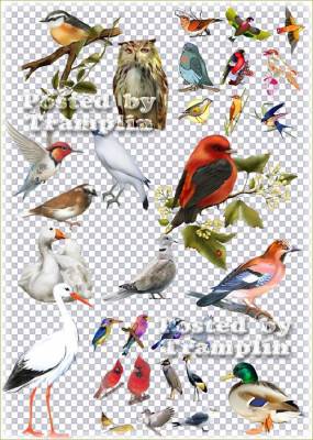 Набор птичек на прозрачном фоне - Лебеди, селезень, сова, ворон, попугаи и другие птицы 100 Png | 2543 x 2689 | 300 dpi | 110 MB Автор: Tramplin |