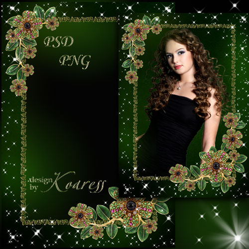 Гламурная рамка для фотошопа с ювелирными украшениями - Драгоценные цветы PSD, многослойный, PNG | 3508x4961 | 300 dpi | 71,83 Mb Автор: Koaress |