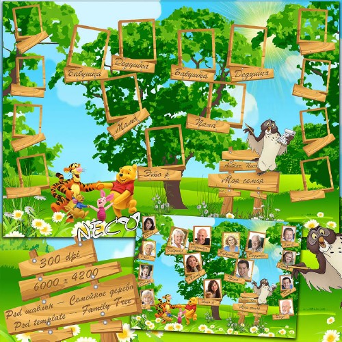 Шаблон семейного дерева в мульяшном стиле с Винни Пухом PSD | 6000x4200 |300 dpi | 118 MB Автор: Neco |