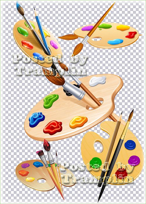 Клипарт на прозрачном фоне – Палитры с красками, кисточки для рисования 5 Png | 2543 x 2689 | 300 dpi | 55 MB Автор: choice – Tramplin |