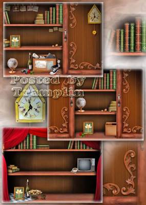 Исходники книжных полок - На полках рамочка для фото, книжки и глобус 3 Psd – многослойный | 4518 x 2372 | 300 dpi | 257 MB Автор: network |