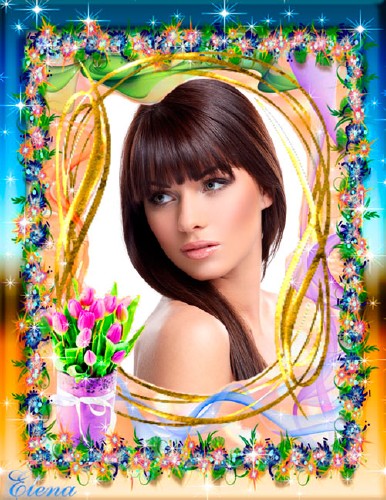 Красивая рамка для фотошопа - Весенний цветок PSD | 5139x6658 | 300 dpi | 128 Mb Автор: Elena |