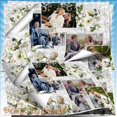 Свадебная рамка-коллаж - С днём свадьбы PSD | 300 dpi | 2362 x 3543 | 67 мб Автор: Фотка |