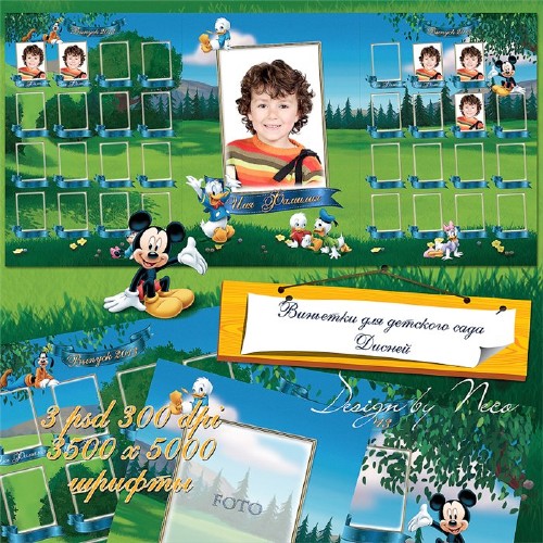 Набор виньеток для детского сада - Герои Диснея 3 PSD | 3500x5000 |300 dpi | 153 MB Автор: Neco |