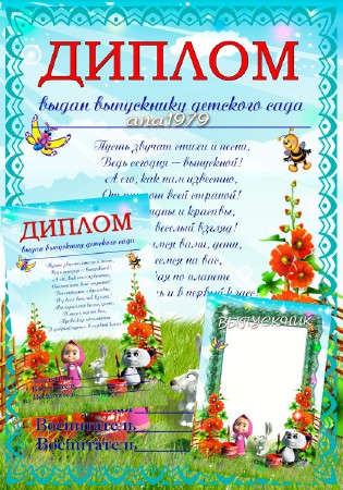 Диплом и рамка - Выпускник детского сада PSD | 2480 x 3543 | 300 dpi | 58,60 Мб Дизайн аnа1979 |
