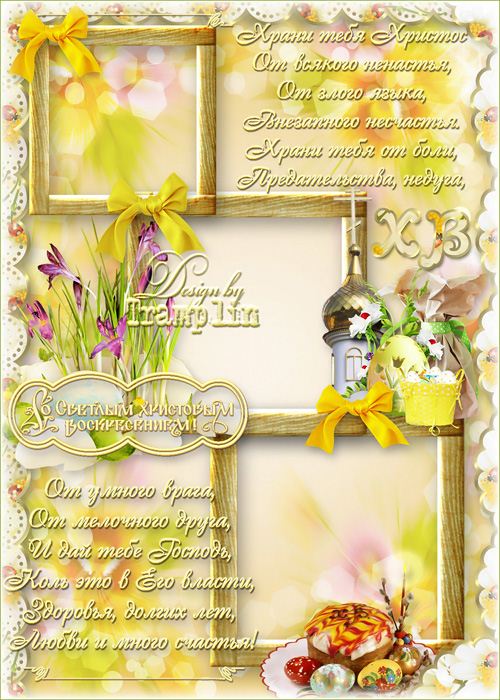 Пасхальная рамка на три фото - Праздником прекрасным, Чудом из Чудес Psd | 2339 x 3307 | 300 dpi | 68 MB Автор: Tramplin |
