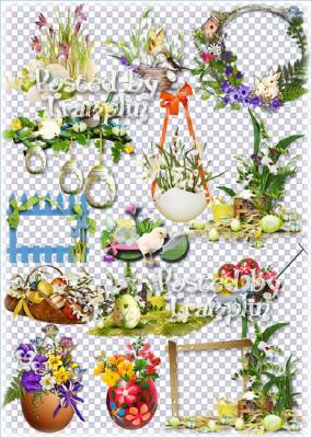 Пасхальный клипарт на прозрачном фоне – Корзины, кластеры, яйца, кролики, цыплята, рамки 55 Png | 2543 x 2689 | 300 dpi | 221 MB Автор: choice – Tramplin |