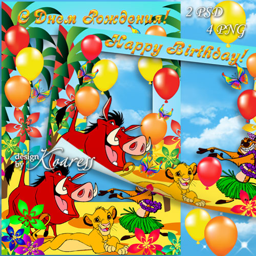 Детская фоторамка - День Рождения с Пумбой, Тимоном и Симбой 2 PSD, многослойные, 4 PNG | 3508x4961 | 300 dpi | 125,99 Mb Автор: Koaress |