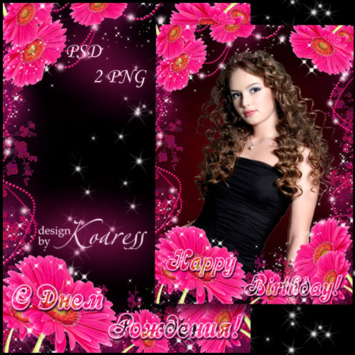 Поздравительная фоторамка с герберами - С Днем Рождения PSD, многослойный, 2 PNG | 3508x4961 | 300 dpi | 102,86 Mb Автор: Koaress |