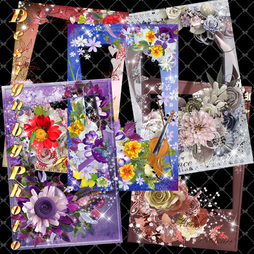Набор рамок для фото - Цветочные фантазии 5 PNG | 300 dpi | 2362 x 3543 |55 мб Автор: Фотка |