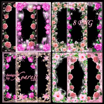 Набор романтических и гламурных рамок для фото с розовыми цветами - В розовом свете 8 PNG | 3770x5332 | 300 dpi | 116,63 Mb Автор: Koaress |