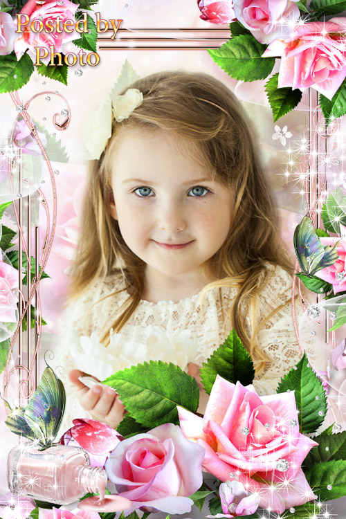 Цветочная рамка для фото - Розовые розы, как рассвет PSD | 300 dpi | 2362 x 3543 |51 мб Автор: Фотка |