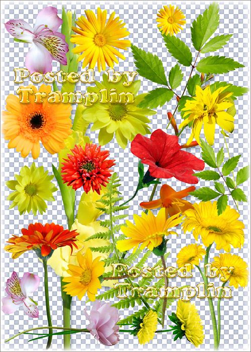 Клипарт на прозрачном фоне – Цветочки и листочки 50 Png | 2543 x 2689 | 300 dpi | 109 MB Автор: Tramplin |