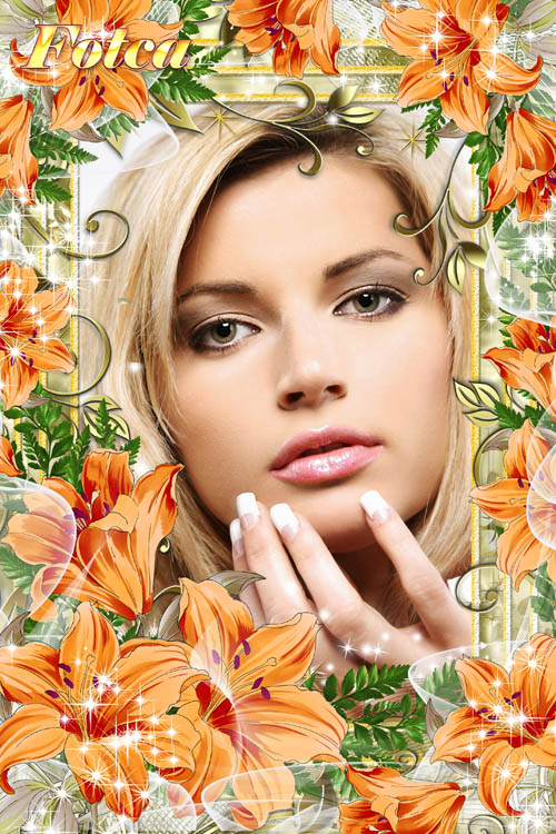 Цветочная рамка для фото - Солнечные лилии PSD | 300 dpi | 2362 x 3543 |55 мб Автор: Фотка |