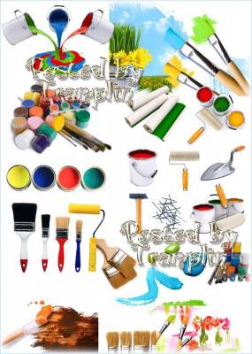 Клипарт для дизайнера – Краски, кисти, валик, обои, шпатель, молоток 15 Jpg – белый фон | 3612 x 1724 | 300 dpi | 74 MB Автор: choice – Tramplin |