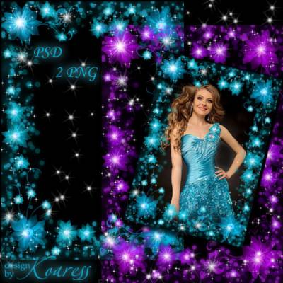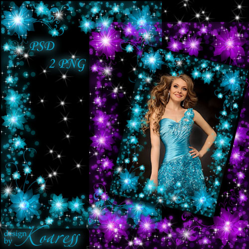Романтическая рамка для фото - Мерцание таинственных цветов PSD, многослойный, 2 PNG | 3543x4959 | 300 dpi | 129,92 Mb Автор: Koaress |