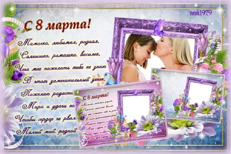 Рамка для фотошопа - С 8 марта мама PSD | 3000 x 4500 | 300 dpi | 89,74 Мб Дизайн аnа1979 |