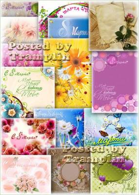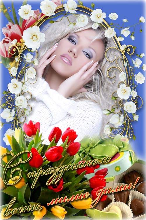 Красивая цветочная рамка - С праздником весны, милые дамы PSD | 2635х3952 | 300 dpi | 53 Мб Автор: Anutochkaaa |