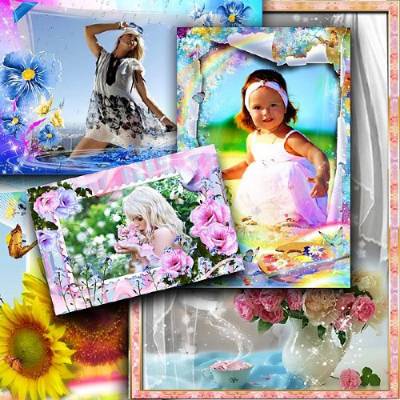 Сборник цветочных фоторамок PSD, 5 PNG | 300 dpi | 3750x2500 | 204,75 Mb Автор:Eva |