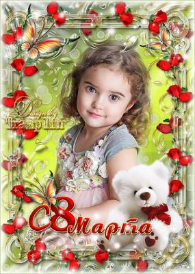 Рамка 8 марта с мягкой игрушкой и бабочками – Самой любимой Psd | 2490 x 3484 | 300 dpi | 56 MB Автор: Tramplin |