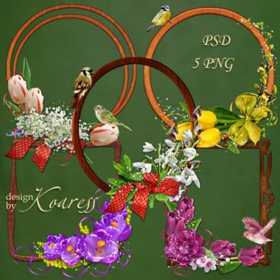 Деревянные рамки-вырезы для фотошопа с птичками и цветочными уголками - Весеннее настроение Рамки, уголки и птицы на разных слоях PSD, 5 PNG | 3500x4200 | 300 dpi | 111,28 Mb Автор: Koaress |