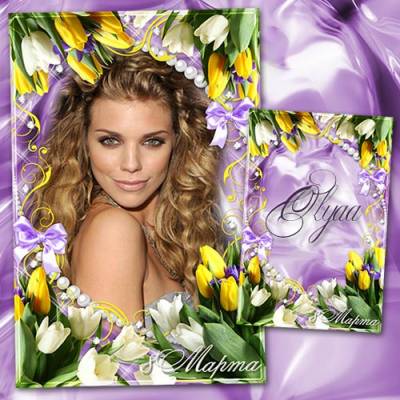 Праздничная рамка к 8 Марта с разноцветными тюльпанами PSD | 3000x4500 | 300 dpi | 56,64 Mb Автор: Olyaa |