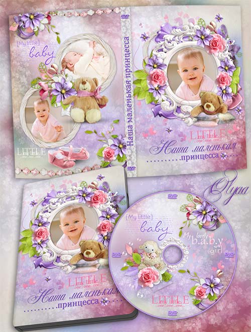 Детская обложка DVD и задувка для девочки - Наша маленькая принцесса 2 PSD | 3248x2177-1432x1431 | многослойные | 300 dpi | 71.84 Mb Автор: Olyaa |