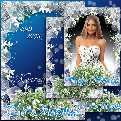 Поздравительная рамка с Днем 8 Марта для фотошопа - Белые подснежники к празднику весеннему PSD, многослойный, 2 PNG | 3543x4959 | 300 dpi | 111,85 Mb Автор: Koaress |