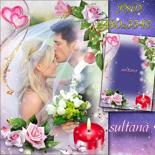 Нежная рамка для свадебных и романтических фото - Любовь, свеча и розы PSD | 2480x3543 | 300 dpi | 96,4 Мб Автор: sultana |