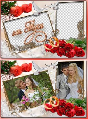 Свадебная рамка для фото - Сердца повенчаны любовью под покровительством небес PSD | 50,8 мб | 5000х3334 | 300 dpi | многослойная | слои отключены Автор: Туся |
