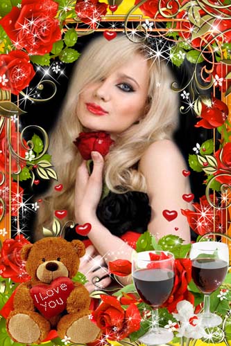 Романтическая рамка для фото с медвежонком и красными розами PSD, PNG | 300 dpi | 2362 x 3543 | 51 мб Автор: Фотка |