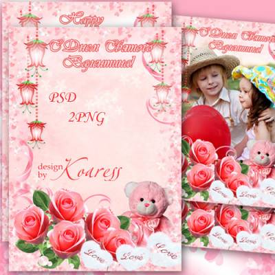 Романтическая рамка для фото к дню Святого Валентина - Любовь в розовом свете PSD, многослойный, 2 PNG | 3508x4961 | 300 dpi | 101,71 Mb Автор: Koaress |