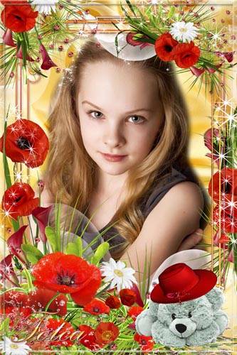 Цветочная рамка для фото - Поглядите, там и тут, Маки красные цветут PSD | 300 dpi | 2362 x 3543 | 73 мб Автор: Фотка |