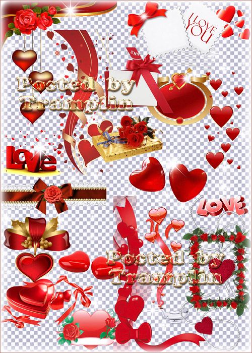 Клипарт на прозрачном фоне к дню Валентина – Отдельные элементы и композиции 100 Png | 2724 x 1724 | 300 dpi | 55 MB Автор: Tramplin |