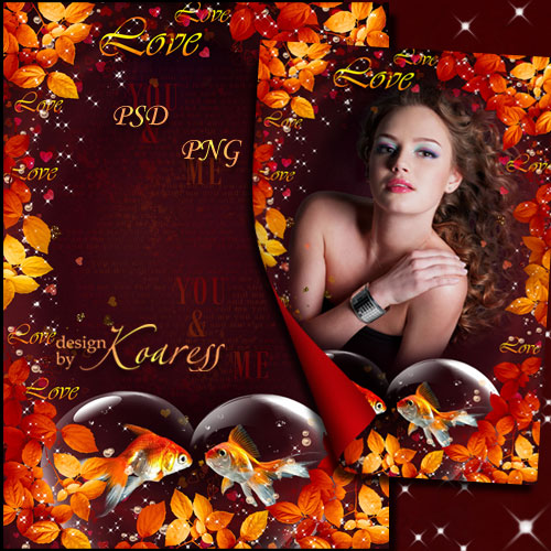 Романтическая рамка для фотошоп с золотыми рыбками - Я и ты PSD, многослойный, PNG | 3508x4961 | 300 dpi | 101,33 Mb Автор: Koaress |