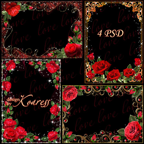 Набор рамок с алыми розами ко дню Святого Валентина 4 PSD, многослойные | 3770x5332, 3543x4959 | 300 dpi | 135,3 Mb Автор: Koaress |