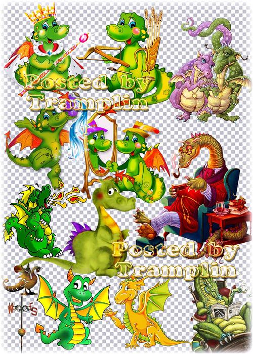 Клипарт – 100 Драконов и дракончиков 100 Png | 1959 x 2865 | 300 dpi | 180 MB Автор: подборка - Tramplin |