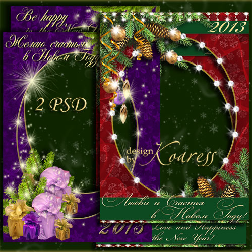Поздравительные Новогодние рамки для фото с пожеланиями - Желаю счастья в Новом году 2 PSD, многослойные, русский и английский текст | 3508x4961 | 300 dpi | 105,72 Mb Автор: Koaress |