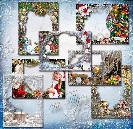 Коллекция новогодних рамок для фото - Бокал за счастье поднимите, за мир, за дружбу, за любовь! 7 PNG | 103 мб | 3600х2700 | 300 dpi Автор: Туся |