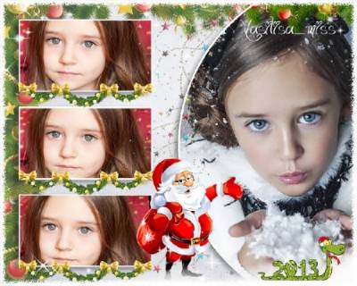 Новогодняя рамка для фото - Елочка пушистая на дворе у нас PSD | 300 dpi | 3543 x 2362 | 53 мб Автор: Фотка |