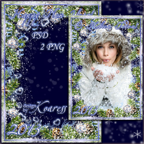 Новогодняя рамка для фото - Метель под Новый год PSD, многослойный, 2 PNG | 3508x4961 | 300 dpi | 116,51 MB Автор: Koaress |