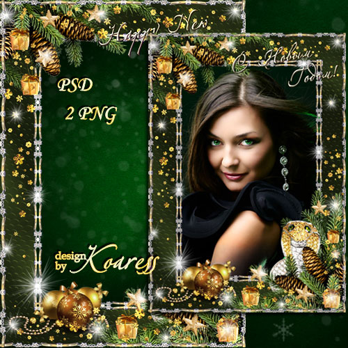 Поздравительная рамка с золотой Змеей для фотошопа - С Новым Годом PSD, многослойный, 2 PNG | 3508x4961 | 300 dpi | 106,73 MB Автор: Koaress |