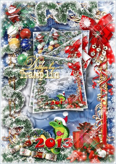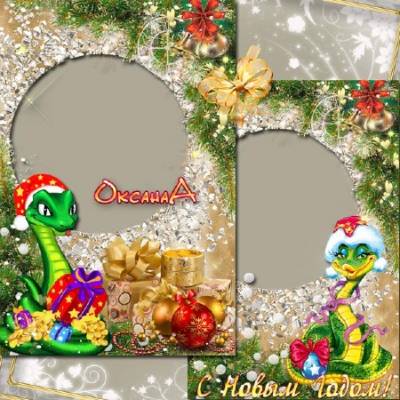 Фоторамка – Наступает год 2013, змея сулит тебе богатство PSD | 3543x5315 | 300 dpi | 114 Mb Автор: ОксанаА. Примечание: слои раздельно, 2 варианта оформления со змеёй снегурочкой и змея с золотыми монетами. |