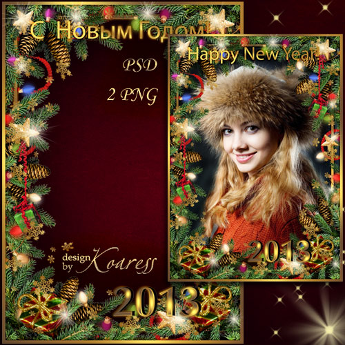 Новогодняя фоторамка - Пестрые гирлянды на зеленой елке PSD, 2 PNG | 3508x4961 | 300 dpi | 147,23 MB Автор: Koaress |